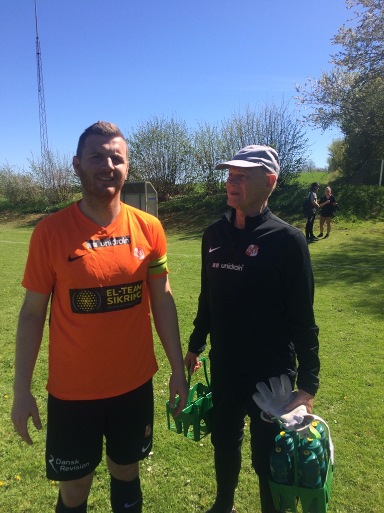 Anfører Nicolaj Just og målmandstræner Erik Lykke Sørensen efter kampen.