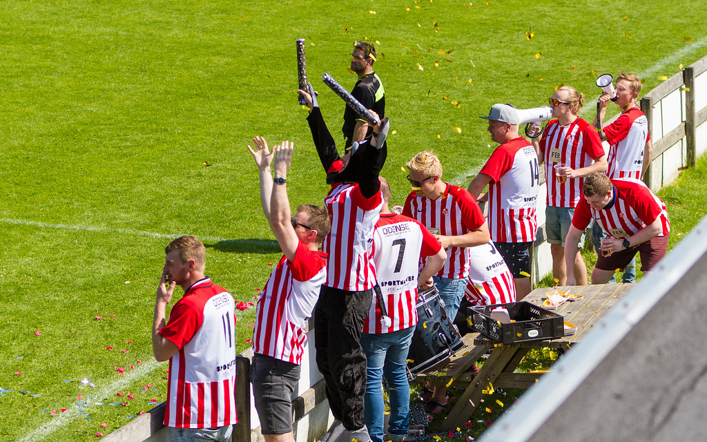 I det 70. minut gik Mønster fri i venstre side af feltet, hvor backen blev sat godt og grundigt. Bolden blev lagt fladt tilbage i feltet, hvor en velspillende Kenneth Andersen sparkede bolden flot og højt i mål. En ren perle og forløsningen var stor hos OKS spillerne og på lægterne. 1 – 0!
