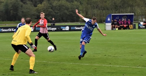 Det lignede at en OKS scoring var under opsejling, men efter 19 minutters spil slog værterne en omstilling og Silas Hausmann kunne tæt under mål passere Adam Pedersen, der var chanceløs (se billede).