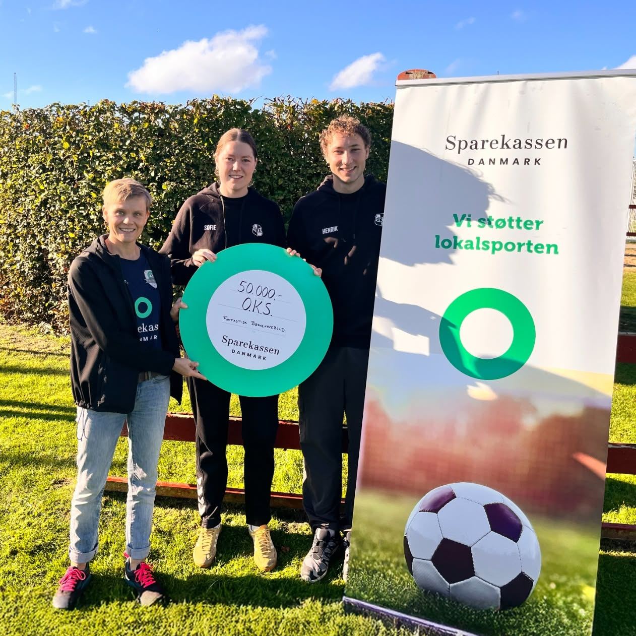 For nyligt overrakte Anne Bygballe Clausen, fra Sparekassen Danmark, 50.000 kroner til Sofie Raarup og Henrik Zimmermann, som står for afvikling af projektet i OKS.